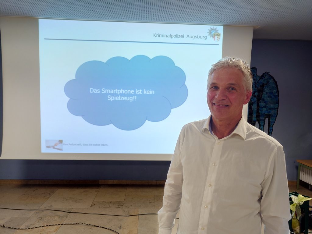 Für den Vortrag konnte Herr Kriminalhauptkommissar Klaus Kratzer von der Kriminalpolizei Augsburg aus der Fachgruppe Prävention in Göggingen gewonnen werden. Schwerpunkte auf der gut besuchten Veranstaltung des Vortrags waren unter anderem: Wie geht denn Cybermobbing / Cyberbullying?  Was ist eigentlich Grooming? Welche Problematiken sind mit den sozialen Netzwerken, Stichwort WhatsApp / TikTok, verbunden? Die Datensicherheit und der Datenmissbrauch im Netz wurden  ebenfalls behandelt. Im Weiteren kamen die neuesten Erkenntnisse aus der kriminologischen Wissenschaft und die Vorstellung der aktuellen JIM- und KIM-Studie zum Tragen.