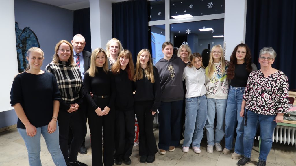 Unter der Leitung  der beiden Lehrkräfte, Frau Elke Drexl und Frau Ursula Aurich, sind dies Schüler/-innen der 8. – 10. Jahrgangsstufe. Die anwesenden jungen Damen erzählten von Projekten, die sie vorrangig mit den unteren Jahrgangsstufen durchführen zu einem sicheren und guten Umgang mit dem Smartphone und allem was dazu gehört, wie z. B. Appeinstellungen oder auch Nutzung von Social Media. Natürlich ist die Arbeit der Medientutoren deutlich vielfältiger, da sie z. B. den Schülerinnen und Schülern auch das Angebot machen, in den Pausen auf sie zuzugehen, um persönliche, manchmal auch kritische Dinge im Umgang mit den Medien von Peer to Peer zu besprechen und zu erlernen.