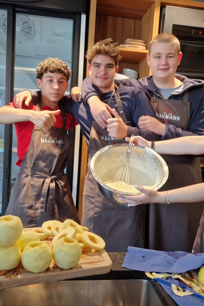 Die Alltagskompetenzwoche der 8. Klassen war auch in diesem Jahr abwechslungsreich gestaltet. So besuchten die Schülerinnen und Schüler die Freiwillige Feuerwehr Königsbrunn und erlernten Grundkenntnisse im Bereich Erste Hilfe durch die schuleigenen Sanitäter. Ihre Fähigkeiten im Bereich Haushaltsführung konnten sie in einem Workshop unter Beweis stellen: Betten beziehen, Wäsche sortieren und Fenster putzen stand auf dem Plan. Auch kulinarisch hatte die Woche einiges zu bieten: Bei Naumanns „Leib und Seele“ wurde ein vollständiges Menü zubereitet und das Thema „Fair trade“ wurde im Rahmen eines Pausenverkaufs erarbeitet. Auch das Thema Pflege wurde erarbeitet. Ein gemeinsames, von den Schülern organisiertes Picknick rundete die Woche ab.